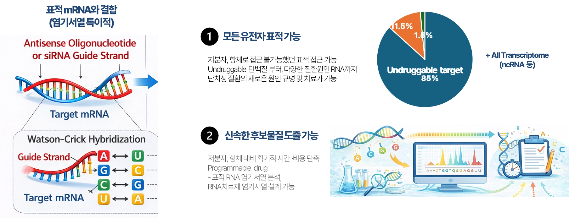 RNA 치료제는 바이오 빅데이터를 기반으로 질병의 원인을 직접 타격하는 '설계 가능한(Programmable)' 최적의 모달리티