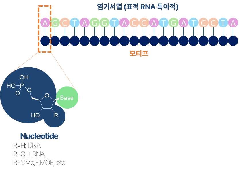 모티프: 화학적으로 변형된 올리고 핵산 단량체 nucleotide의 특정 조합